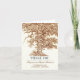 Cartão de agradecimento de casamento rústico com desenho de árvore de carvalho marrom antigo e coração de madeira talhada.