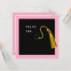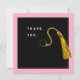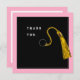 Cartões de formatura criativos com design clássico de boina preta e borla dourada em fundo rosa para graduado. Edite o texto para adicionar o nome.
