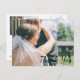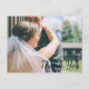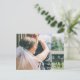 Este é um clássico cartão postal de agradecimento de casamento. A característica deste cartão é uma foto na frente e atrás. "Obrigado" em uma fonte de script branca elegante e uma mensagem de agradecimento de texto personalizado que pode ser personalizada. O fundo branco na parte de trás do cartão é frequentemente personalizado para uma cor diferente através de personalizá-lo / Editar / Fundo.