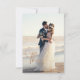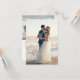 Personalize facilmente estes elegantes cartões de agradecimento de fotos de casamento com duas fotos do casamento na frente e no verso: uma foto vertical completa com uma sobreposição de gradiente de mármore branco e "obrigado" em folha metálica dourada falsa elegante e tipografia manuscrita, e uma foto horizontal no verso, com texto de agradecimento personalizável em fonte sans serif moderna e simples. Os cartões de agradecimento de fotos orçamentários têm um fundo branco minimalista, mas você pode editá-lo em qualquer cor.
