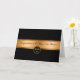 Cartão de congratulações de imóveis sofisticado com emblema de casa com aparência metálica simulada e elemento de design na frente e as palavras "Parabéns pela sua nova casa" que você pode personalizar e tornar seu. Projetado para enviar congratulações aos seus clientes de imóveis para temas relacionados a agentes imobiliários, agências ou corretores que valorizam seus clientes.