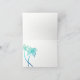 Lindos cartões de agradecimento de palmeiras em azul-teal e verde tropicais que você pode personalizar. Este design exclusivo de aquarela retrata 2 palmeiras contra um céu noturno azul-teal safira escuro, verde e rosa/bege com estrelas cintilantes. Personalize o lado de fora e de dentro com seu próprio texto e fotos! Categoria: ideias de casamento com tema de praia; modelo de cartão de agradecimento de palmeiras para casamento tropical. Cores: azul-teal, verde-marinho, bege, rosa e branco.