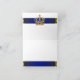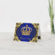 Cartões de agradecimento do Príncipe com bela coroa azul real e dourada em um fundo azul real e dourado. A mesma coroa e redemoinho azul real e dourado estão na parte superior e inferior do interior do cartão. Você pode adicionar seu texto para uma mensagem impressa ou deixar em branco para sua mensagem manuscrita.
