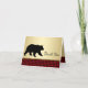 Cartões de agradecimento do urso com um urso preto em um fundo xadrez búfalo dourado e vermelho. Você pode adicionar sua mensagem no interior ou deixar em branco para adicionar sua mensagem manuscrita quando eles chegarem. Este é um design impresso sem brilho real, folha metálica, etc.