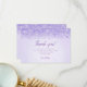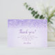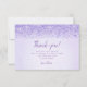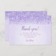 Cartão de Agradecimento Glam com Brilho Roxo. Criado com todo o glamour necessário para dizer obrigado de uma forma cintilante! Este cartão de agradecimento é projetado com faíscas roxas, brilho e um fundo roxo claro. Para designs personalizados, entre em contato com Metro-Event.com.