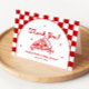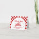 Agradeça aos convidados com um delicioso estilo com este cartão de agradecimento de chá de bebê com tema de pizza italiano retrô vermelho e branco, apresentando um clássico fundo xadrez vermelho e branco, detalhe de laço charmoso e tema divertido "Slice Slice Baby". Perfeito para um chá de bebê de pizza, chá de bebê italiano ou celebração moderna e trendy, este cartão combina vibrações de pizzaria vintage com acentos de laço femininos para um visual único e elegante. Projetado para chá de bebê de menino, chá de bebê de menina ou celebração de bebê neutra, este cartão de agradecimento xadrez vermelho é ideal para festas de foodies, temas inspirados em restaurantes italianos, festas de piquenique xadrez e eventos com estética retrô. A paleta de cores vermelha e branca ousada, tipografia fofa e design de coquete trendy tornam-no perfeito para novos pais que amam decoração de pizza, charme italiano rústico e papelaria moderna de chá de bebê. Use-o como um cartão de agradecimento de chá de bebê, cartão de apreciação, cartão de gratidão, agradecimento de festa ou cartão