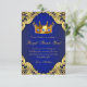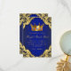 Cartões de agradecimento para festa de aniversário do príncipe com coroa de jóias reais em um fundo azul real e dourado. Este lindo cartão de agradecimento para festa de aniversário do príncipe azul real e dourado é facilmente personalizado adicionando sua mensagem. Este é um design impresso sem jóias reais, glitter, etc.