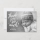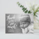 Cartões de agradecimento para recém-nascidos com uma escrita branca. Envie a foto do seu recém-nascido e personalize o texto na parte inferior.