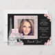 Cartões de agradecimento Paris sweet sixteen com moldura de foto bonita em uma Torre Eiffel rosa e preta e fundo de presente elegante. Você pode adicionar a mensagem de sua escolha e adicionar sua foto para personalizar esses elegantes cartões de agradecimento de Paris.
