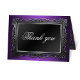 Cartões de agradecimento roxos com moldura gótica com um tema gótico apresentando uma impressão de uma imagem de moldura cinza metálica ornamentada na frente e dentro, com um gradiente de roxo a preto, e "Obrigado" sobre um gradiente de cinza escuro a preto. O interior é impresso personalizado com sua própria mensagem personalizada de agradecimento, ou pode ser facilmente excluído para deixar a mensagem interna em branco para escrever à mão seus sentimentos de gratidão. Ótimo para o Halloween, casamentos góticos ou temáticos e Chás de Noiva, ou sentimentos do dia a dia.