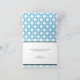 Cartões de agradecimento com estampa de bolinhas azuis café sortidas com um padrão de bolinhas sortidas de tamanhos alternados de círculos brancos sobre um azul estilo café. Grande e ousado, "obrigado" é impresso diagonalmente em branco na frente sobre uma faixa preta diagonal no canto inferior direito. O interior é impresso personalizado com o seu próprio texto ou pode ser facilmente deixado em branco para escrever à mão seus próprios sentimentos de gratidão. Ao redor desta área de texto do modelo está o mesmo padrão de bolinhas sortidas, um elemento único em oposição ao típico interior branco. Este estilo e esquema de cores tornam esses cartões uma escolha apropriada para Chás de Noiva, Chás de Bebê e Aniversários.