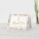 Cartões de agradecimento tropicais elegantes e sofisticados. Com palmas verdes, detalhes em rosa e um texto "Obrigado" em falso dourado com abacaxi. Por favor, note: os elementos metálicos serão impressos para parecerem dourado, mas os convites não conterão dourado real, glitter ou tinta metálica.