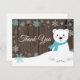 Cartões de agradecimentos de Aqua Floco de Neve do Urso Polar Russo de inverno. Aqua Polar Bear. Fundo Rustic Wood. Campo de Vintage Retro Barn. Floco de Neve Auqa. Amor e Obrigados, bela fonte de script. Adicione sua mensagem de volta ou deixe vazio e mande escrever. Para mais personalização, clique no botão "Personalizar" e use nossa ferramenta de design para modificar este modelo.