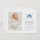 Novos anúncios de nascimento do arco-íris azul-bebê, Bright linda e feliz design! Em conjunto com um belo bilhete de agradecimento ao reverso para obrigado de seus entes queridos.
