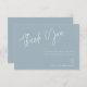 Este é o modelo de Cartões de agradecimentos minimalista. O fundo azul empoeirado com a escrita moderna parece elegante e elegante e será excelente para qualquer Partido Bridal.