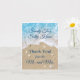 O discurso divertido, Sandy Toes Salty Kisses Obrigado do Sr. & A Sra. destaca este Cartões de agradecimentos de Casamento sobre um fundo de água azul oceânica, areia da praia, conchas, estrelas e dólares de areia. A dentro deste cartão pode ser facilmente personalizada com a mensagem do seu próprio obrigado. Se precisar de ajuda para personalizar este cartão, ou se precisar de outros itens de coordenação, entre em contato conosco em prettyfancyinvites@gmail.com com sua solicitação. Uma versão fotográfica deste cartão está também disponível na Coleção de Casamentos de Ondas Azuis.
