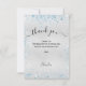 Fundo de aspecto fino prateado, decorado com brilho azul claro, brilhos. Escrita escrita com letras grandes com baloiços e o texto: Obrigado. Personalize e adicione sua nota de agradecimento e seu nome.
