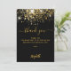 Um fundo preto, brilho de ouro falso decorado, brilhos. Escrito escrito em grande mão e texto: Obrigado. Personalize e adicione sua nota de agradecimento e seu nome.