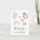 Cartões de agradecimentos de correspondência para o convite ao Chá de fraldas.Este cartões de agradecimentos apresenta brinquedos de bebê a cores aquáticas e animais empalhados. Personalize com o nome do bebê. Clique em "Clique para personalizar mais" para editar o estilo, o tamanho e a cor da fonte, se desejar.