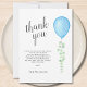 O Cartões de agradecimentos de Chá de fraldas deste rapaz é decorado com um balão azul de aquarela e eucalipto verde. Facilmente personalizável. Use a Ferramenta Design para alterar o tamanho, o estilo ou a cor do texto. Original Watercolor © Michele Davies.