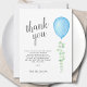 O Cartões de agradecimentos de Chá de fraldas deste rapaz é decorado com um balão azul de aquarela e eucalipto verde. Facilmente personalizável. Original Watercolor © Michele Davies.