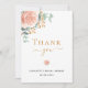 Um fundo branco chic. Decorados com ouro-rosa, flores cor-de-rosa-pincel, flores (rosas) e folhas de eucalipto de cor aquosa verde, galhos, verde e borras de ouro falsas. Escrito escrito em grande mão e texto: Obrigado. Personalize e adicione sua nota de agradecimento e seu nome.