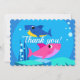 Cartões de agradecimentos customizáveis com um tubarão cor-de-rosa e azul.