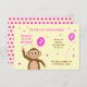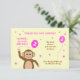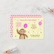 Este cartões de agradecimentos de segundo aniversário coordena-se com o cartão de convite na coleção "segundo aniversário Macaco Cheeky". Mostra um macaco sorridente segurando um balão de segundo aniversário rosa. "OBRIGADO POR VIR!" Todo o texto é editável. O fundo do cartão é creme, e há algumas estrelas rosas e brancas dispersas. No verso, há um padrão de bolinhas cor-de-rosa com uma estrela solteiro no centro.