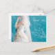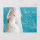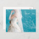 Diga "obrigado" com este elegante design azul e branco. Apresentando uma noiva em um vestido branco contra um fundo floral de ornamentado.