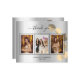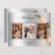 Adicione 3 das suas fotos de aniversário, tamanho vertical, uma data, nome e a nota de agradecimento. Um fundo de aparência falsa prateada com texto e quadro negros, um ouro de eucalipto. O texto: Obrigado na parte frontal e seu nome no verso é escrito com um roteiro à mão com na moda com baloiços. 1 folha = 1 Cartões de agradecimentos impresso bordo a borda