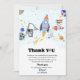 Cartões de agradecimentos de aniversário de crianças bonitas com um tema espacial. Este tema é adequado para qualquer idade; basta modificar a idade selecionando a opção personalizada.