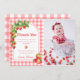 Cartões de agradecimentos de Aniversário de Morango Gingham Rosa