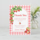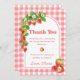 Cartões de agradecimentos de Aniversário de Morango Gingham Rosa