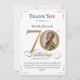 Cartões de agradecimentos de Aniversário do 70 de Foto Personalizado Dourado. Um cartões de agradecimentos especial de celebração de aniversário, elegantemente projetado, com uma foto personalizada de pessoa de aniversário e caligrafia de script com elementos florescentes de vintage. Simples o suficiente para ajustado de uma variedade de temas e cores! Precisa de ajuda com o modelo? Basta entrar em contato comigo!