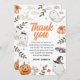 Adorável cartões de agradecimentos de aniversário do Halloween com fantasmas doces, abóboras e detalhes pastéis. Perfeito por enviar gratidão festiva aos seus convidados.