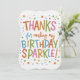 Um cartões de agradecimentos para dar aos convidados de aniversário e mostrar-lhes o quanto você está feliz por tê-los. A design é principalmente para aniversários infantis e é totalmente editável. Aproveite