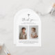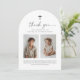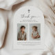 Obrigado seus hóspedes por vir ao Batismo de suas crianças com este design, com 2 fotos suas com um belo duo de fontes e um cartão em forma de arco.