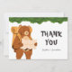 A Aventura Do Urso De Madeira Aguarda Cartões de agradecimentos. Papel de carta de chá de fraldas florestal neutro em termos de gênero. Possui urso marrom bonitinho e adorável ao caminhar com mapa e mochila com folhagem verde. Vamos a aventura começa!