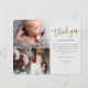 Este Cartões de agradecimentos Photo Collage Baby Script 3 apresenta um obrigado de caligrafia manuscrito em ouro moderno, e uma mensagem pessoal na frente. Clique no botão personalizar para personalizar este design com suas fotos e detalhes.