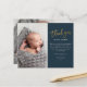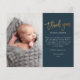Esta foto moderna, graças a você, mostra obrigado de guião dourado, mensagem pessoal e uma foto vertical na frente. O verso inclui uma segunda foto de bebê que é uma foto horizontal de cheio.