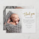 Esta foto moderna, graças a você, mostra obrigado de guião dourado, mensagem pessoal e uma foto vertical na frente. O verso inclui uma segunda foto de bebê que é uma foto horizontal de cheio.