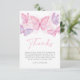 Cartões de agradecimentos de primeiro aniversario borboleta com borboletas rosa e roxa. O tema perfeito da borboleta para a primeira festa de aniversário da sua menina.