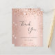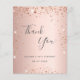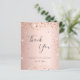 Um cartões de agradecimentos para um aniversário de 50 anos (ou qualquer idade). Um fundo metálico falso de rosa dourado, decorado com poeira falsa. À frente, um grande texto escrito à mão e o texto: Obrigado, seu texto, título e uma data. Back: Modelo para sua nota de agradecimento e seu nome.