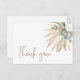Cartões de agradecimentos elegante de escrita de caligrafia colorida com buquê floral boêmico com folha de palma seca, verde de eucalipto e flores brancas.