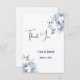 Este cartões de agradecimentos de casamento é mostrado no livro branco matte com um layout moderno de um impressão de arte aquática de lindas flores azuis e brancas. Texto em uma cor azul Marinho. Personalize este item, retirando o texto do exemplo e colocando suas informações nele. Imagem de ações. freepik.com