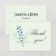 Um cartões de agradecimentos com lindas imagens de flores azuis. As imagens, o fundo e o texto são personalizáveis. Arte original por W.B.