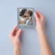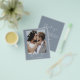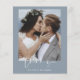 Boas-vindas do Orçamento Azul Obrigado Cartões que têm uma foto na frente e atrás. Os cartões de agradecimento contêm uma tipografia cursiva moderna, escrita com letra de mão, que é elegante, simples e moderna para usar após a celebração do dia do casamento.