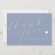 Um cartões de agradecimentos de casamento moderno com um maravilhoso roteiro branco numa cor azul empoeirada. Adicione um obrigado pessoal que você envia aos seus convidados.