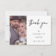 Cartões de agradecimentos de Casamento Cardíaco de Script Minimalista Simples, moderno e minimalista com cartões de agradecimentos de casamento com uma caligrafia moderna que direciona a imagem, fotografia e coração. A parte traseira da placa também apresenta a fotografia do casal e uma mensagem aos amigos e à família.
