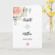 Um fundo branco decorado com ouro-rosa, florais cor-de-rosa pincelado, flores (rosas) e folhas de eucalipto de cor aquosa verde, galhos, verde e borras de ouro falsas. Dentro: 1rua das suas fotos de casamento, tamanho vertical. Sua nota de agradecimento. Traseiro: segundo das suas fotos, tamanho da paisagem.